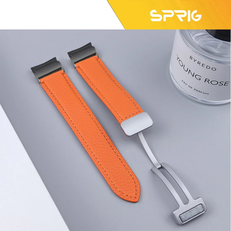 بند اسپریگ مدل Leather Mag-BK ORG مناسب برای ساعت هوشمند سامسونگ Galaxy Watch 6 44mm