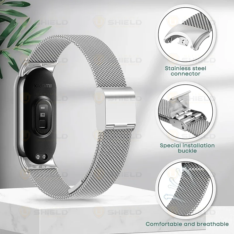 بند میلانس استیل ضد زنگ با طراحی ظریف و تنفسپذیر، ترکیبی از راحتی و استحکام را ارائه میدهد. این بند به یک قفل کلیپسی فلزی (Special Buckle) مجهز است که امکان نصب و باز کردن آسان را فراهم کرده و در عین حال امنیت بالایی دارد. اتصال بند از جنس استیل ضد زنگ ساخته شده و در برابر خط و خش و تغییر رنگ مقاوم است. به لطف طراحی سبک و منعطف، روی دست احساس راحتی ایجاد کرده و برای استفاده روزمره گزینهای شیک و کاربردی محسوب میشود. این بند با میبند 8، 9 و 10 سازگار است.