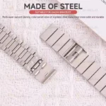 بند Link GK با طراحی بافت فلزی پیوسته و یکپارچه، جلوهای لوکس و مدرن به ساعت شما میبخشد. قفل مخصوص آن بهگونهای طراحی شده که بهراحتی باز و بسته میشود و امکان تنظیم دقیق برای هر اندازه مچ را فراهم میکند، بنابراین مناسب تمامی سایزهاست. جنس بند از استیل ضد زنگ با کیفیت بالا ساخته شده و با پولیش حرفهای سطحی فوقالعاده براق و چشمنواز دارد که هم مقاومت بالا و هم ظاهر شیک را تضمین میکند. این بند نهتنها دوام طولانی دارد، بلکه استایل شما را به سطح جدیدی ارتقا میدهد و تجربه استفادهای راحت و مطمئن ارائه میکند.