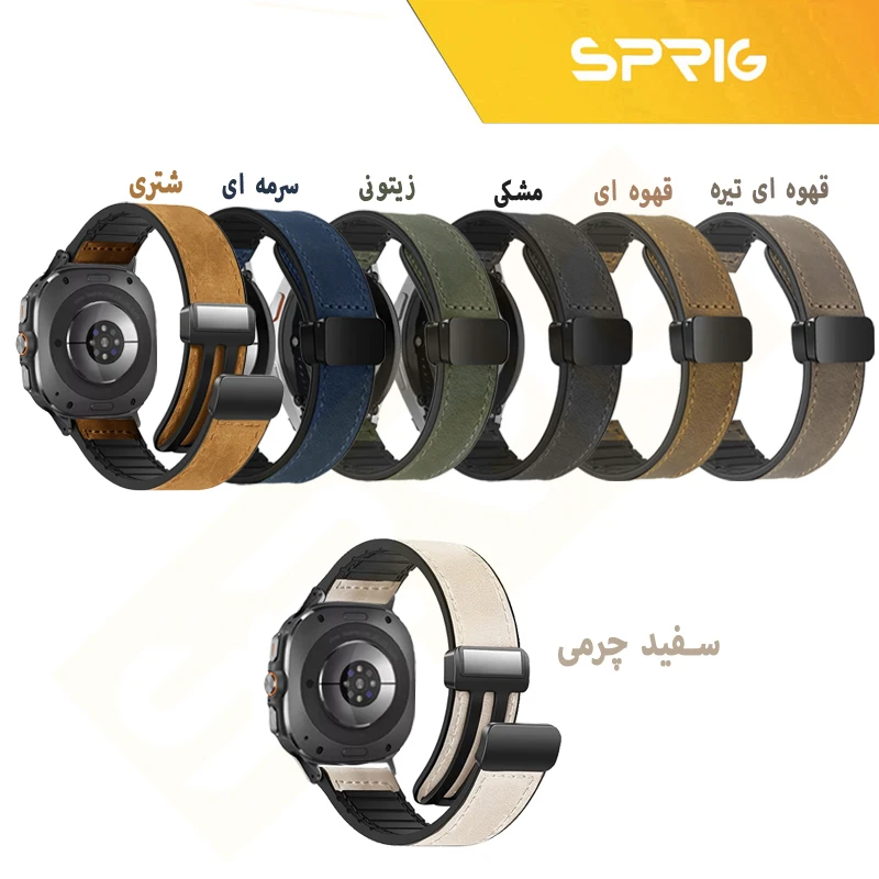 بند اسپریگ مدل Magnetic Soft Leather W8 مناسب برای ساعت هوشمند سامسونگ Galaxy Watch 8 40mm / 8 44mm / 8 Classic 46mm