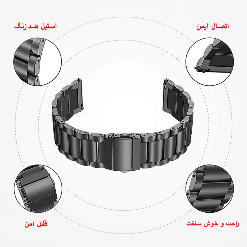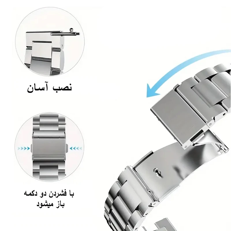 بند 22 میلی متری 3Row یک انتخاب عالی برای کسانی است که به دنبال ترکیبی از زیبایی و دوام هستند. این بند از جنس استیل ضد زنگ ساخته شده است که نه تنها ظاهری شیک و مدرن دارد، بلکه در برابر سایش و آسیب نیز بسیار مقاوم است. قابلیت تنظیم این بند به شما این امکان را میدهد که آن را به راحتی بر اساس اندازه مچ خود تنظیم کنید و از راحتی بیشتری در طول روز برخوردار شوید. سیستم قفل این بند با طراحی هوشمندانهای که دارد، از باز شدن ناخواسته آن جلوگیری میکند و با فشردن دو دکمهی کناری، به راحتی میتوانید آن را ببندید یا باز کنید. اتصال محکم و ایمن این بند به بدنهی ساعت، اطمینان خاطر شما را در استفاده روزمره و فعالیتهای ورزشی فراهم میکند. این بند با دوام بالا و طراحی جذاب، گزینهای مناسب برای استفاده در هر موقعیتی است. همچنین، با وجود رنگها و سایزهای مختلف، میتوانید به سادگی آن را با استایل شخصی خود هماهنگ کنید. اگر به دنبال یک بند با کیفیت و زیبا برای ساعت هوشمند خود هستید، بند 3Row انتخابی ایدهآل خواهد بود.