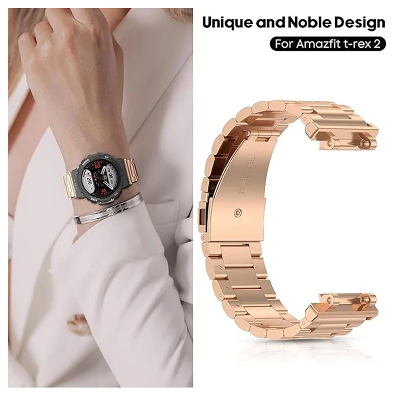 بند فلزی آکوآرا با طراحی شیک و مقاوم، گزینهای ایدهآل برای کسانی است که به استایل رسمی و حرفهای اهمیت میدهند. این بند از جنس استیل ضدزنگ با کیفیت بالا ساخته شده و با قفل تاشو یا کلیپسی، بهراحتی و با اطمینان روی مچ فیکس میشود. ظاهر شیک و کلاسیک آن بهخوبی با انواع استایلهای روزمره یا رسمی هماهنگ شده و انتخابی ماندگار برای ارتقای ظاهر ساعت هوشمند شماست.