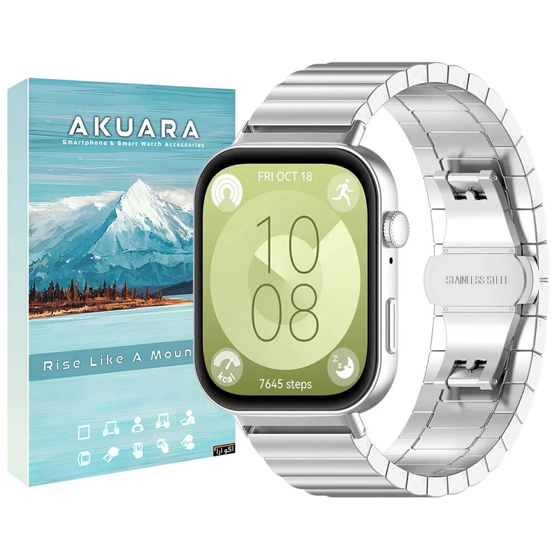بند فلزی آکوآرا با طراحی شیک و مقاوم، گزینهای ایدهآل برای کسانی است که به استایل رسمی و حرفهای اهمیت میدهند. این بند از جنس استیل ضدزنگ با کیفیت بالا ساخته شده و با قفل تاشو یا کلیپسی، بهراحتی و با اطمینان روی مچ فیکس میشود. ظاهر شیک و کلاسیک آن بهخوبی با انواع استایلهای روزمره یا رسمی هماهنگ شده و انتخابی ماندگار برای ارتقای ظاهر ساعت هوشمند شماست.