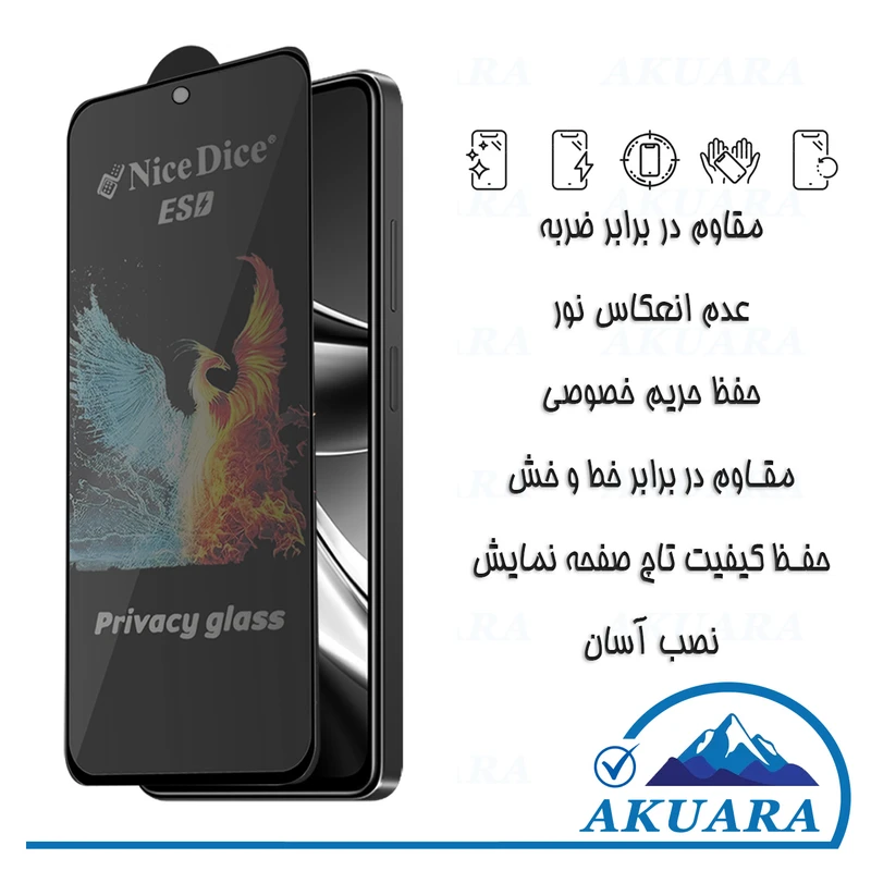محافظ صفحه نمایش آکوآرا مدل Premium PRV Nice از نوع پرایوسی (privacy) است و با فیلتر کردن زاویه دید، باعث میشود محتوای نمایشگر فقط از روبهرو قابل دیدن باشد و اطرافیان نتوانند آن را ببینند. با شیشهی حرارتدیدهی مقاوم ساخته شده و در برابر خطوخش، ضربه و افتادن محافظت کامل فراهم میکند. نصب آسان و بدون حباب دارد، حساسیت لمس صفحه را حفظ میکند و شفافیت تصویر در زاویهی مستقیم کاملاً واضح باقی میماند. همچنین بهخوبی در برابر اثر انگشت و لکههای چربی مقاومت میکند.