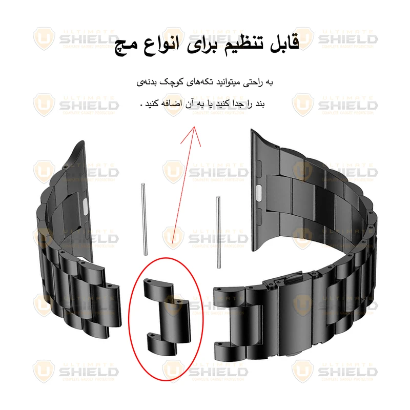 با دوام – از جنس استیل ضد زنگ – ظاهری شیک و مدرن – مقاوم برابر سایش و آسیب – قابلیت تنظیم – قفل مطمئن – اتصال محکم و ایمن به بدنهی اپل واچ – مناسب برای استفاده روزمره |