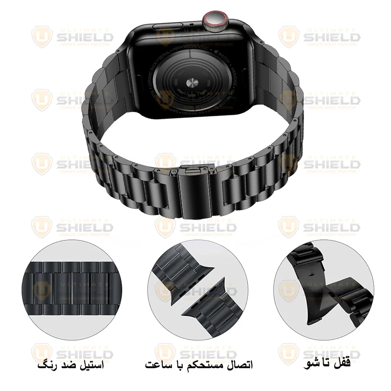 با دوام – از جنس استیل ضد زنگ – ظاهری شیک و مدرن – مقاوم برابر سایش و آسیب – قابلیت تنظیم – قفل مطمئن – اتصال محکم و ایمن به بدنهی اپل واچ – مناسب برای استفاده روزمره |