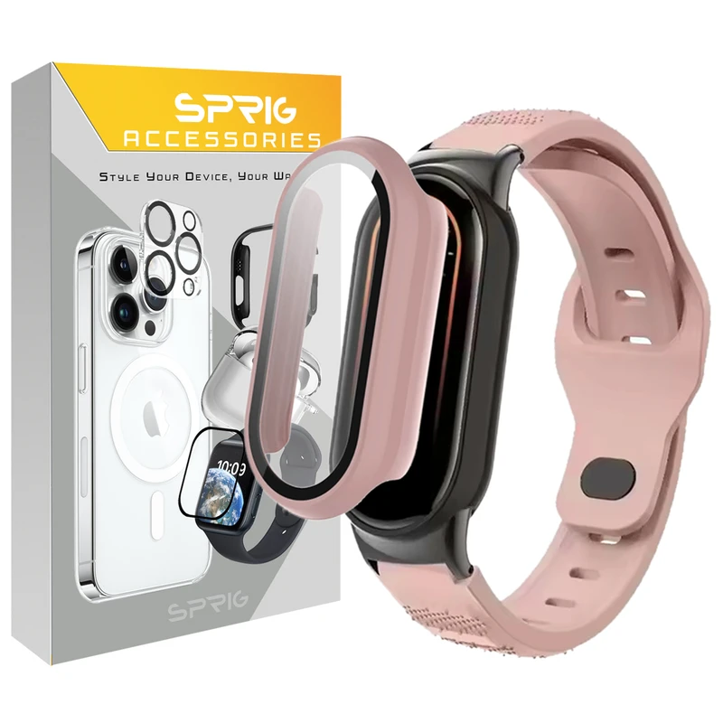 بند اسپریگ مدل PinkSPG GUD مناسب برای ساعت هوشمند شیائومی Mi band 9 12mm به همراه کاور