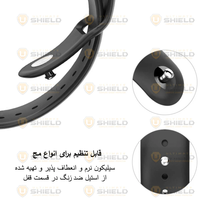 سبک – نرم و انعطاف پذیر – ضد تعریق و آب – با دوام – از جنس سیلیکون مرغوب – قفل استیل – قابل تنظیم برای انواع مچ |