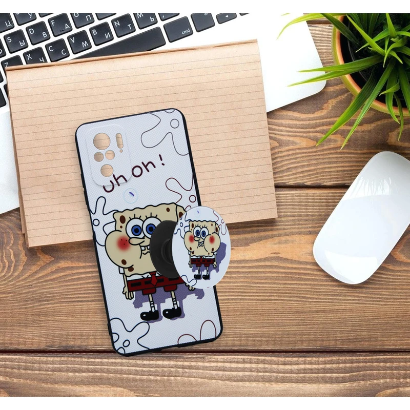 کاور طرح Spong Bob مدل MTHD مناسب برای گوشی موبایل شیائومی Redmi Note 10 4G / Note 10s به همراه پایه نگهدارنده