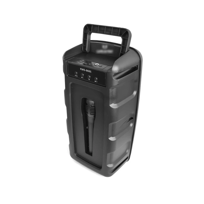 اسپیکر بلوتوثی 6685 با داشتن دو باند 4 اینچی همراه با میکروفون و کابل شارژ همراه قابل پخش موزیک از طریق بلوتوث فلش و رم را برای شما فراهم کرده است این اسپیکر بلوتوثی به علت حجم و اندازه مناسب خود توانایی جابه جایی بسیاری دارد که میتوان آن را به مسافرت های مختلف و فضای باز منتقل کرد با توجه به داشتن دو باند این اسپیکر علاوه بر فضا های بسته برای فضا های باز نیز مناسب است …